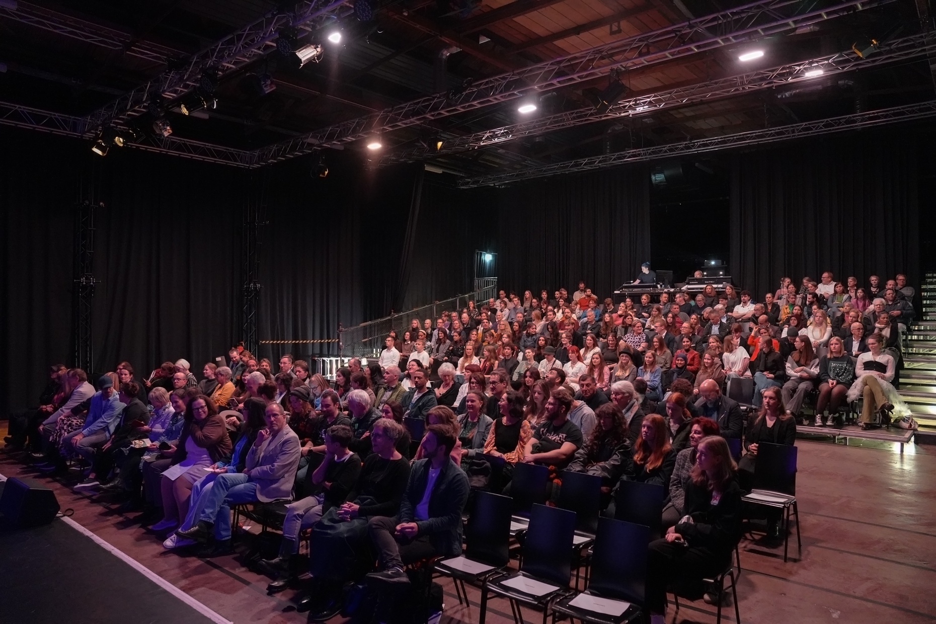 den anderen Teilnehmer*innen schonmal in den Saal, in dem die Preisverleihung stattfinden wird.