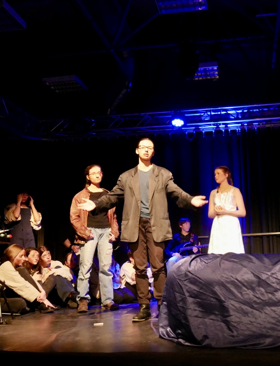 Band, Chor und Mittelstufen-Theater-AG zeigten ihre Interpretation der Nibelungensaga mit der Aufführung von „Rheingold“, einer Theaterfassung von Michel Assis. Die beiden Veranstaltungen am Donnerstag, den 3. April, und Freitag, den 4. April, um 19 Uhr im C-Trakt waren ein voller Erfolg und zogen ein begeistertes Publikum an.