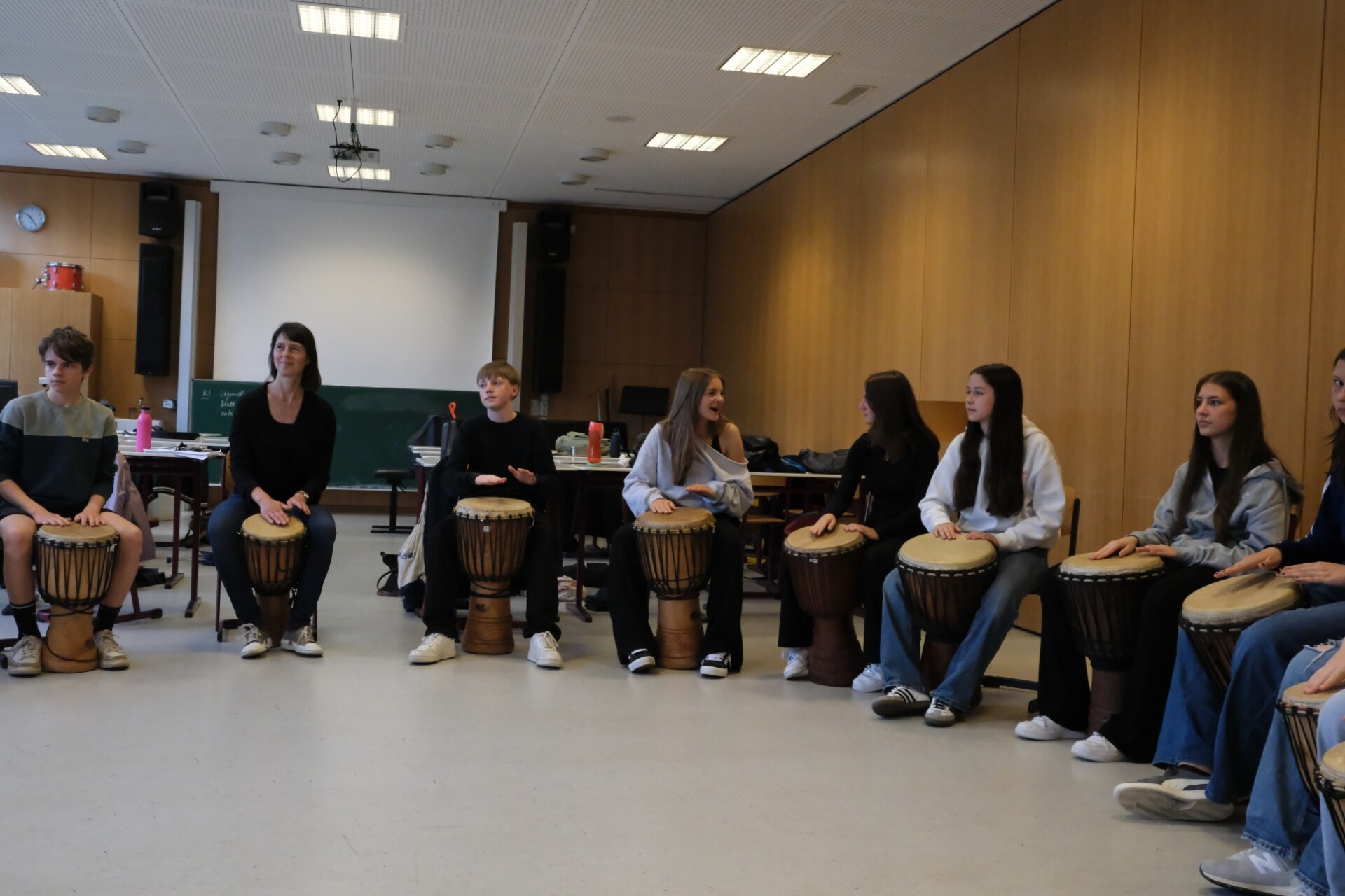 In der Woche vor den Pfingstferien hatten die interessierten Schülerinnen der 8. Klassen die Möglichkeit, an einem Vormittag an Workshops in englischer Sprache teilzunehmen. Unter der Anleitung erfahrener Trainerinnen aus Uganda konnten die Schüler*innen in die faszinierende Kultur Ugandas eintauchen. Die Workshops umfassten Trommel- und Tanzkurse sowie spannende Einblicke in die Landeskunde, die den Teilnehmer*innen viel Freude bereiteten.