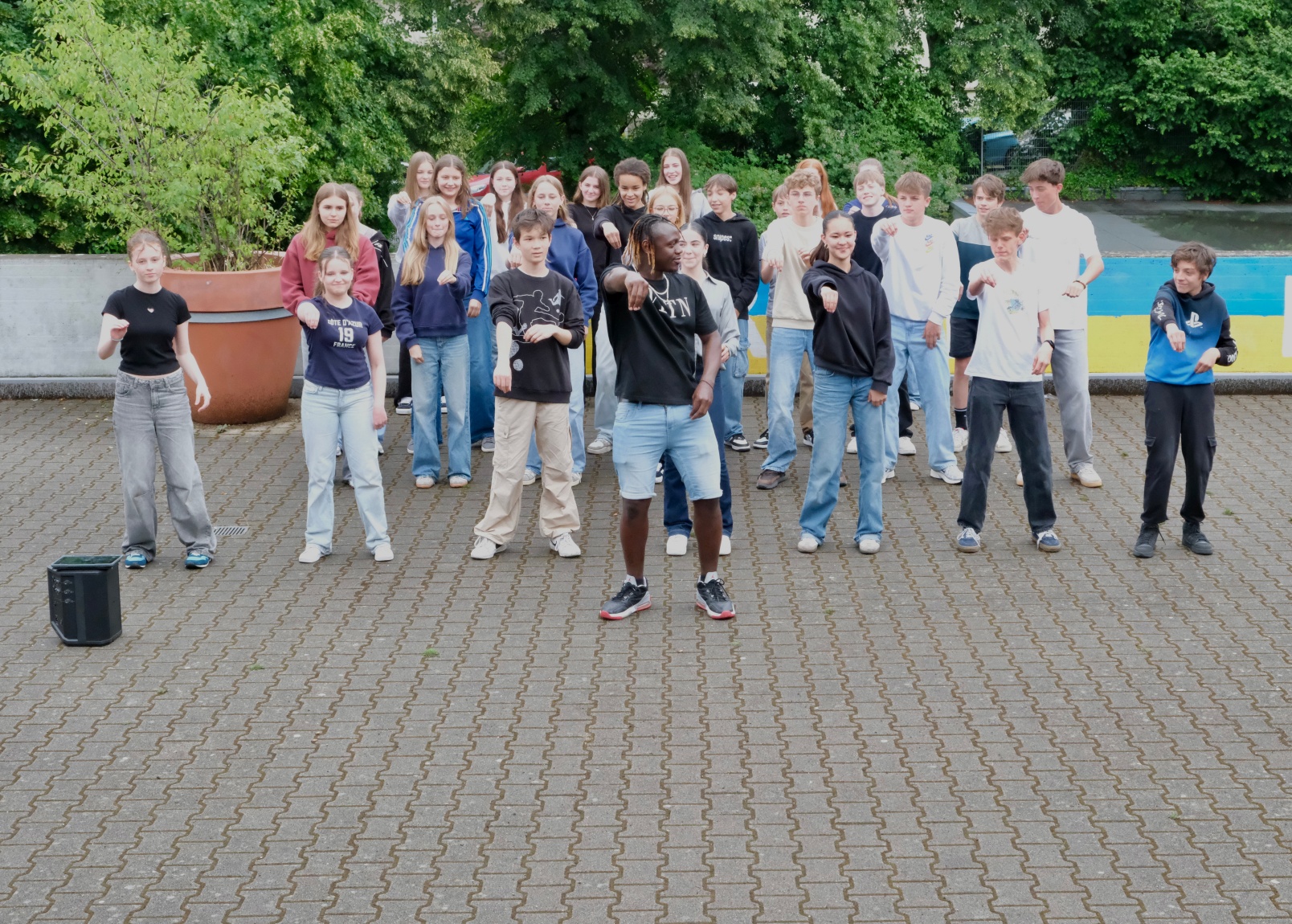 Ein Highlight der Uganda-Tage war der kurze Pausenauftritt jeder Klasse, bei dem die Schüler*innen die einstudierten Tänze präsentierten.