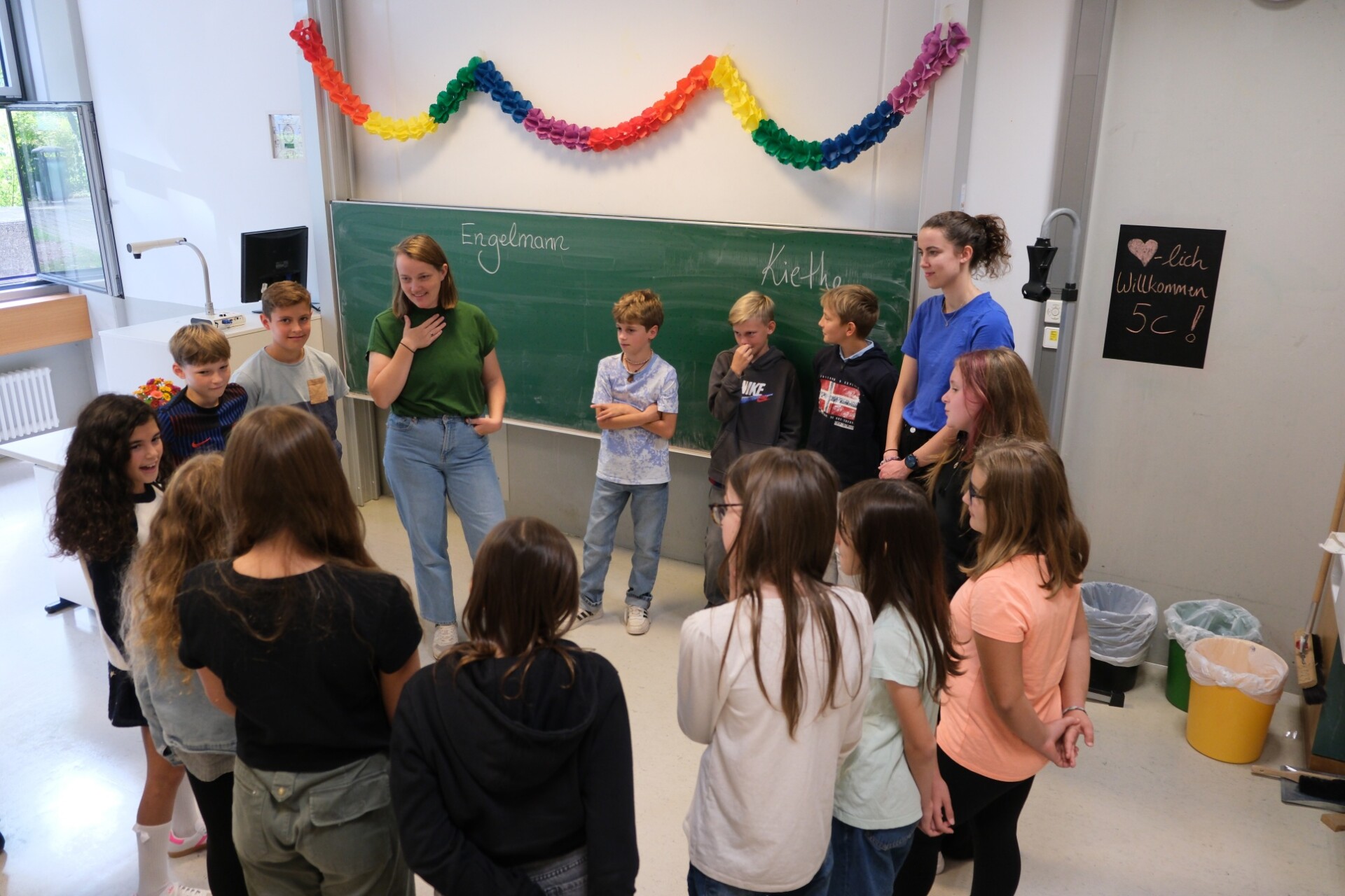 Am Mittwochmorgen startete dann der reguläre Unterricht. Neben ersten Eindrücken in neuen Fächern und vielen Informationen stand eine aufregende Schulhausrallye auf dem Programm, die unseren Neuankömmlingen half, das große Schulgelände spielerisch zu erkunden.