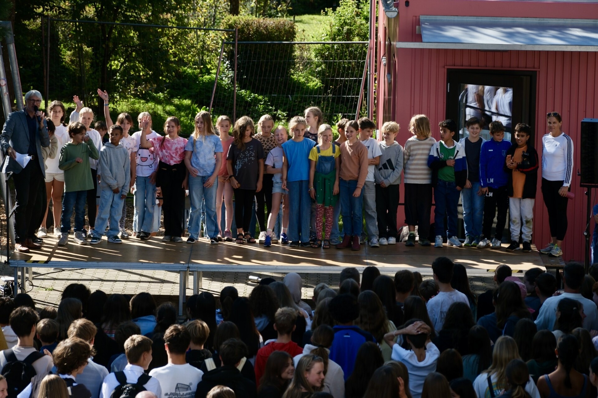 Den feierlichen Abschluss der ersten Woche bildete die traditionelle Schulversammlung am Freitag. Hier wurden die neuen Mitschüler*innen von der gesamten Schulgemeinschaft mit einem herzlichen Applaus willkommen geheißen.