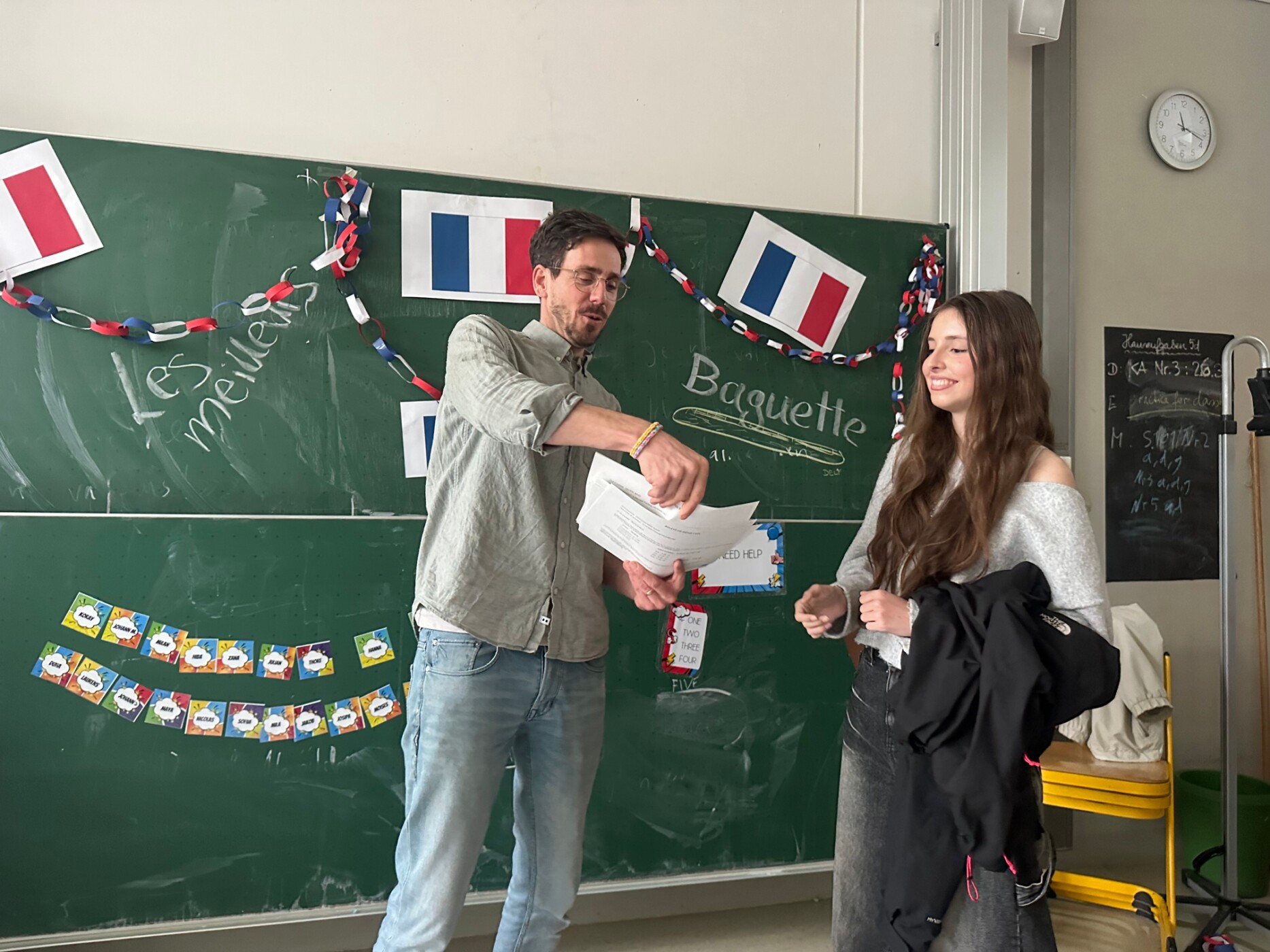 Anfang März war der große Tag für unsere Französisch-Schüler*innen der Klasse 10: Die Zeugnisse der DELF-Prüfung auf Niveau B1 trafen druckfrisch aus Paris ein. Herr Brandt verteilte die begehrten, international anerkannten Sprachzertifikate persönlich an unsere glücklichen Schüler*innen.