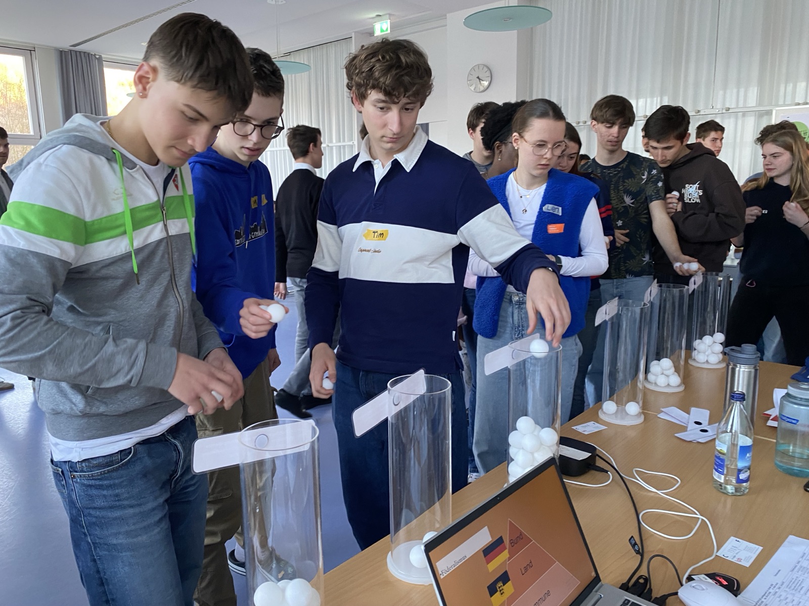 Zwei Referenten der Außenstelle Heidelberg der LpB führten die Teilnehmenden durch ein abwechslungsreiches Programm. Dabei stand unter anderem ein Planspiel zum Gesetzgebungsprozess im Landtag von Baden-Württemberg (LÄNDtag) an, das unseren Schülern besonders in Erinnerung geblieben ist. In diesem sollten sich SchülerInnen in die Rolle von Landtagsabgeordneten hineinversetzen. In Kleingruppen war es ihre Aufgabe die vorgegebenen Positionen von fiktiven Fraktionen im Landtag BW zu einem Gesetzesentwurf möglichst gut zu vertreten. Dieser handelte von der Einführung eines deutschlandweit gültigen, preislich starkermäßigtem Jugendticket für den ÖPNV. Die Verteilung dieser Gruppen war an der realen Verteilung der Fraktionen im Landtag orientiert. Außerdem gab es einen Workshop zu KI-erzeugten Bildern aus Wahlprogrammen (Landtagswahl.AI), der Wahl-O-Mat on Tour zu den Positionen der Parteien sowie ein unterhaltsames PubQuiz zur Landtagswahl 2026 auf der Agenda.